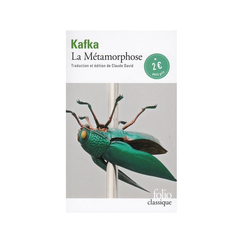 "Lorsque Gregor Samsa s'éveilla un matin au sortir de rêves agités, il se retrouva dans son lit changé en un énorme cancrelat. [...] "Que m'est-il arrivé ?" pensa-t-il. Ce n'était pas un rêve. [...] "Et si je continuais un peu à dormir et oubliais toutes ces bêtises", pensa-t-il, mais cela était tout à fait irréalisable, car il avait coutume de dormir sur le côté droit et il lui était impossible, dans son état actuel, de se mettre dans cette position. Il avait beau se jeter de toutes ses forces sur le côté droit, il rebondissait sans cesse sur le dos."
