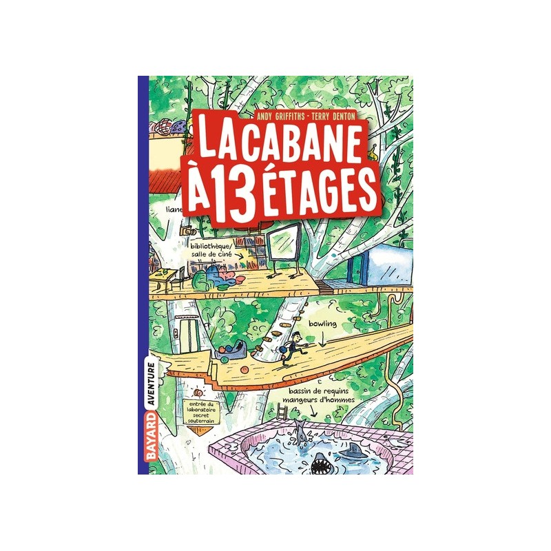 Andy et Terry ont beaucoup de chance : ils vivent dans une cabane dans les arbres. Mais attention, elle a 13 étages ! Et elle comporte un bowling, un bassin de requins mangeurs d'hommes, une bibliothèque pleine de BD, un laboratoire secret souterrain, des lits qui se font tout seuls, des lianes pour se déplacer de pièce en pièce, un exterminateur de légumes, une fontaine de limonade et une machine à chamallows qui vous suit partout et vous envoie automatiquement un chamallow dans la bouche dès que vous avez un petit creux. Le problème, c'est qu'Andy et Terry passent leur temps à s'amuser alors qu'ils sont censés écrire un livre : la cabane à 13 étages...
