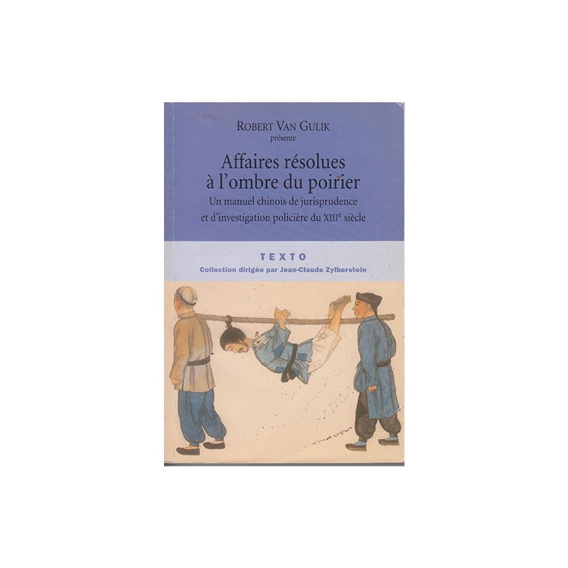 Les passionnés d'enquêtes policières sont familiers du personnage du juge Ti, popularisé dans les romans de Robert Van Gulik publiés entre 1951 et 1968. Si ce héros vécut réellement au VIIe siècle de notre ère, sous la dynastie Tang, Van Gulik s'inspira principalement d'un manuel de jurisprudence postérieur, les Affaires résolues à l'ombre du poirier (Tang Yin Pi Shi). Compilé en 1211, ce recueil de 144 affaires criminelles a constitué l'ouvrage de référence des magistrats chinois jusqu'à la chute de l'Empire céleste sept siècles plus tard. Les cas les plus étranges s'y succèdent : les plaignants amènent leurs vaches au tribunal, les juges soumettent pelleteries et ballots de soie à la torture, moines libertins, princes du sang et brigands de haut vol se croisent en un étrange ballet criminel. Ces histoires de magistrats perspicaces, d'assassins roués et de criminels endurcis nous font pénétrer au cœur d'un monde sophistiqué et impitoyable, celui de la Chine ancienne, si lointaine et si proche.