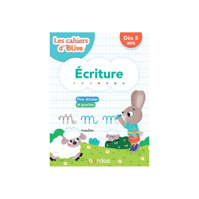 Les cahiers d'Olive - Ecriture , un cahier d'écriture pour accompagner l'enfant dans son apprentissage de l'écriture grâce à Olive le lapin, dès 5 ans. Un cahier d'écriture(19, 5 x 26, 1 cm) qui reprend la progression de la méthode de lecture de Josyane Roure Yvon avec : Des exercices stimulants d'écrire sous 3 graphies : minuscule cursive, majuscule cursive et bâton Un apprentissage progressif de l'écriture marge, fine puis seyes Des conseils pour tenir son crayon et tenir son cahier Des exercices de pré-écriture en haut de page Ce cahier est adapté aux enfants gauchers et droitiers. Il reprend les clés d'apprentissage de la méthode phonétique et syllabique, J'apprends à lire avec Olive , de Josyane Roure Yvon, orthophoniste pour enfants. Une méthode qu'elle utilise avec succès dans son cabinet depuis 10 ans pour initier l'enfant à l'écriture dès le plus jeune âge, avant l'entrée au CP.