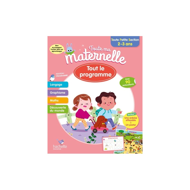 Le cahier N°1 de la Maternelle, pour bien accompagner son enfant tout au long de l'année ! - 56 fiches d'activités simples et ludiques, conformes au programme. - Plus de 90 autocollants, des illustrations attrayantes et des thèmes amusants pour encourager l'enfant et le stimuler. - Un poster à détacher et à afficher : au recto, l'imagier des formes et des couleurs ; au verso, le vocabulaire de la ferme joliment illustré. - Une petite histoire, en fin d'ouvrage, pour consolider l'apprentissage des mots illustrés sur le poster, à l'aide de nombreux autocollants.