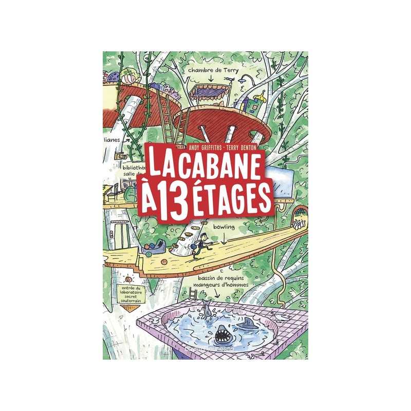 Andy et Terry ont beaucoup de chance : ils vivent dans une cabane dans les arbres. Mais attention, elle a 13 étages ! Et elle comporte un bowling, un bassin de requins mangeurs d'hommes, une bibliothèque pleine de BD, un laboratoire secret souterrain, des lits qui se font tout seuls, des lianes pour se déplacer de pièce en pièce, un exterminateur de légumes, une fontaine de limonade et une machine à chamallows qui vous suit partout et vous envoie automatiquement un chamallow dans la bouche dès que vous avez un petit creux. Le problème, c'est qu'Andy et Terry passent leur temps à s'amuser alors qu'ils sont censés écrire un livre : la cabane à 13 étages...