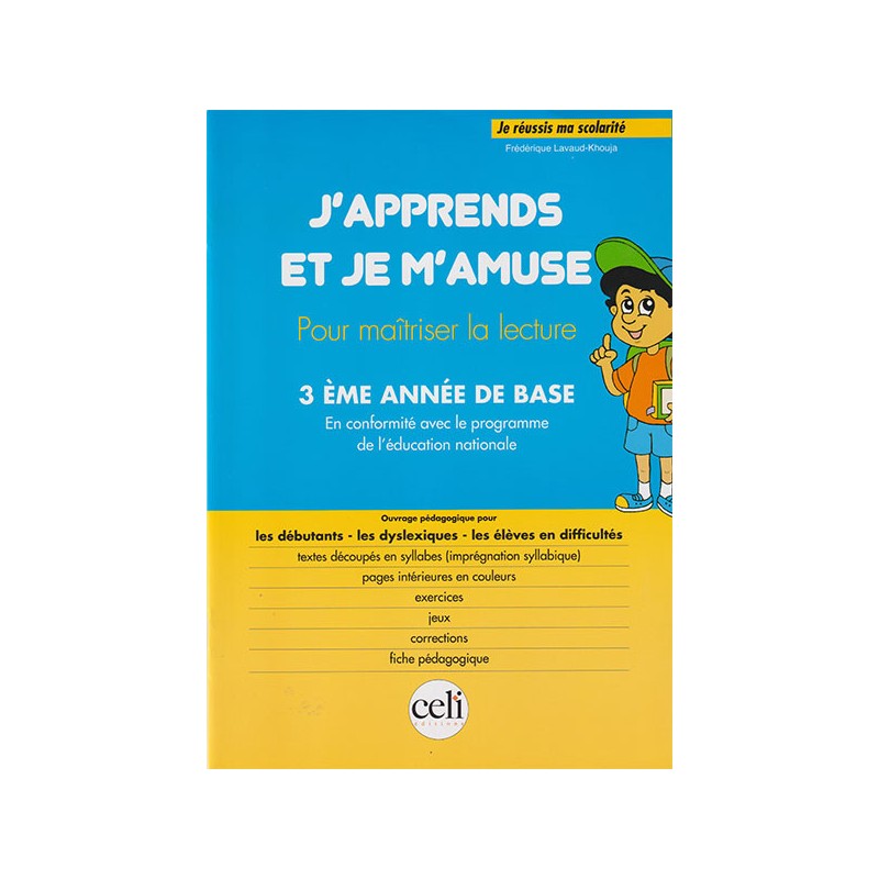 Ouvrage pédagogique reflétant le programme de la 3ème année de base français pour les débutants,les dyslexiques,les élèves en difficultés
