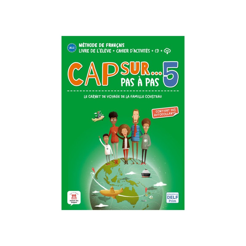 Cap sur...pas à pas est une nouvelle méthode de Français Langue Étrangère pour les enfants. L'élève suit la famille Cousteau qui décide de faire un tour du monde dans des pays francophones. Pendant leur périple qui les emmène depuis Paris vers la Martinique, le Sénégal, le Canada, etc. ils tiennent un carnet de voyage illustré, que les élèves retrouvent dans la méthode.
