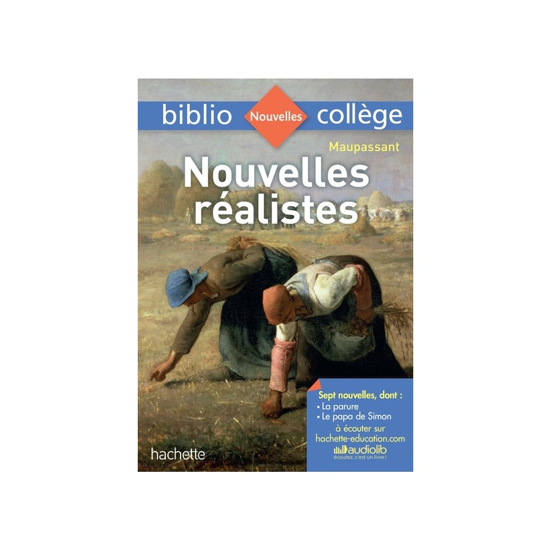 Ce Bibliocollège regroupe 7 nouvelles réalistes de Maupassant, en lien avec le thème au programme de 4e « La fiction pour interroger le réel » : Aux champs (questionnaire : la place de l'argent au XIXe siècle), La parure (questionnaire : un conte de fée cruel), Clochette (questionnaire : le secret d'une vie), Boitelle (questionnaire : le triomphe des préjugés ?), Le papa de Simon (questionnaire : seul face au groupe), Le trou (questionnaire : une farce noire) et Toine (questionnaire : un ogre de farce).
